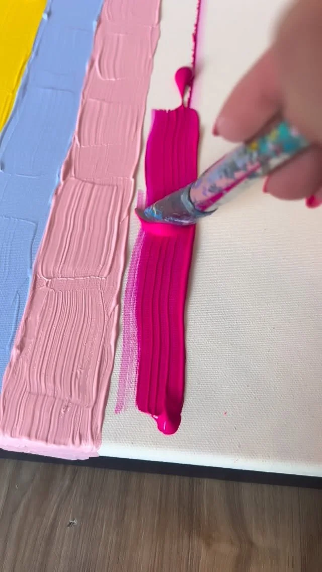 Alex paints with acrylic paints and mediums on gallery wrapped canvas.